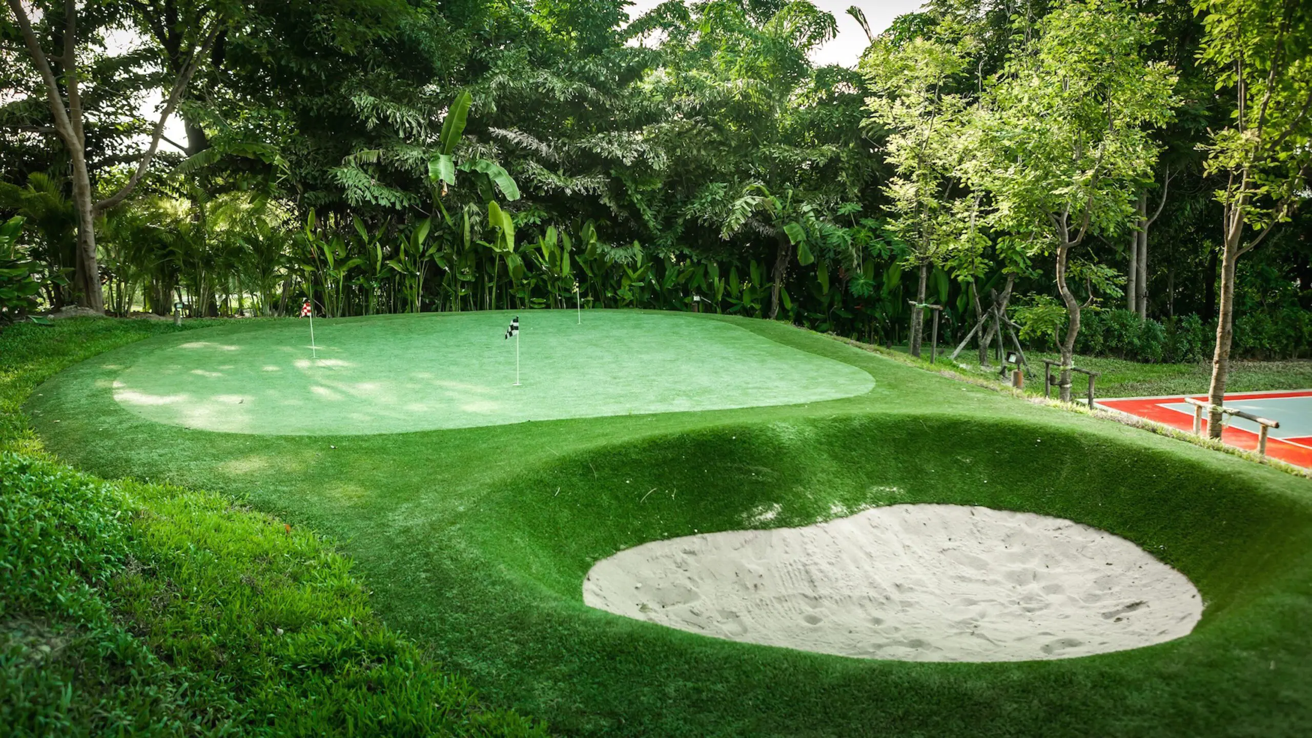 Amarapura offers an abundance of luxury amenities. This luxury villa boasts two swimming pools on two different levels and many Jacuzzis. The two master bedrooms come with super king-size beds and other luxuries. The other bedrooms are furnished with king-size beds, all with spectacular views of the pool or the beautiful gardens. The villa also includes a fully equipped gym and a game room to add to your holiday experience. Outside the villa are a small golf course, a basketball court, and a private beach.
