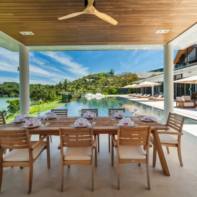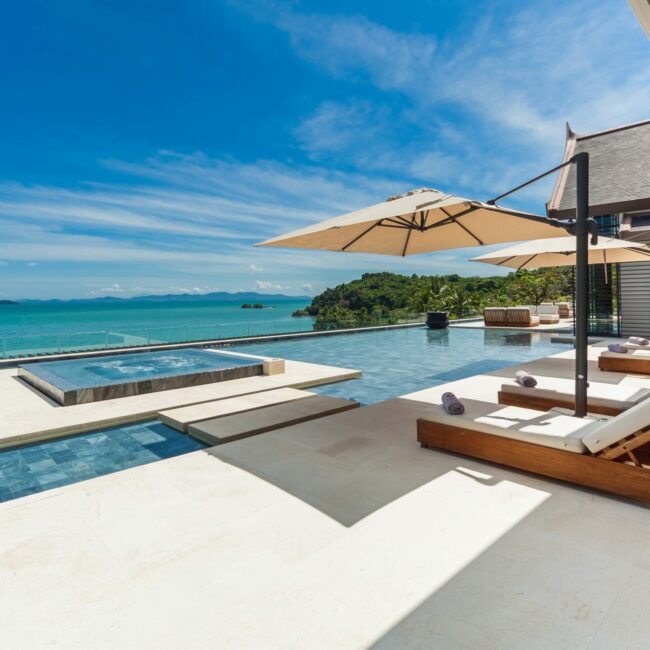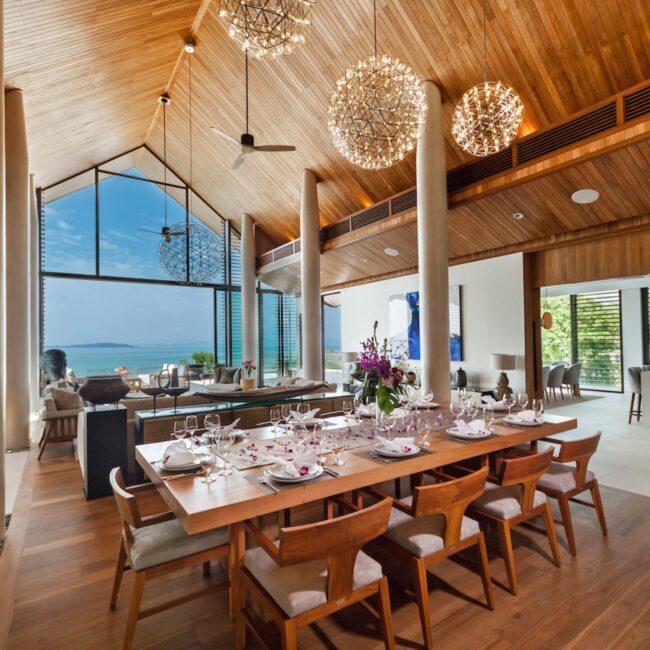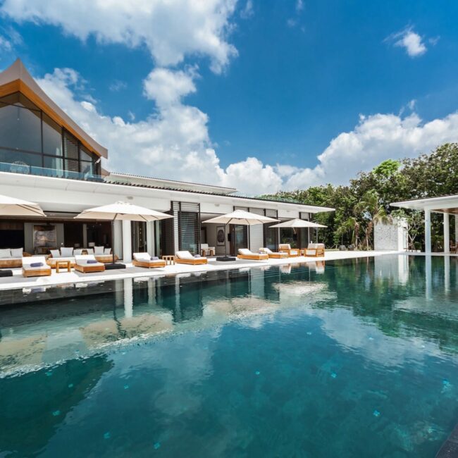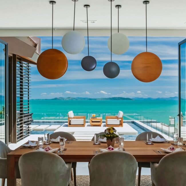 The villa’s strategic location allows guests to enjoy panoramic views of the blue skies and the ocean. Less than twenty minutes away, guests can enjoy some of the best golf courses in Asia as well as yacht services from the local yacht ports. The villa is easily accessible thanks to its close proximity to Phuket International airport.